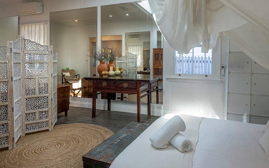 Private, peaceful, and just steps from the vibrant village. This is pure luxury. It has fast WiFi, soft linen bedding, cushions, and throws. You will also find organic self-care items made with local ingredients at your Byron Bay wellness retreats.